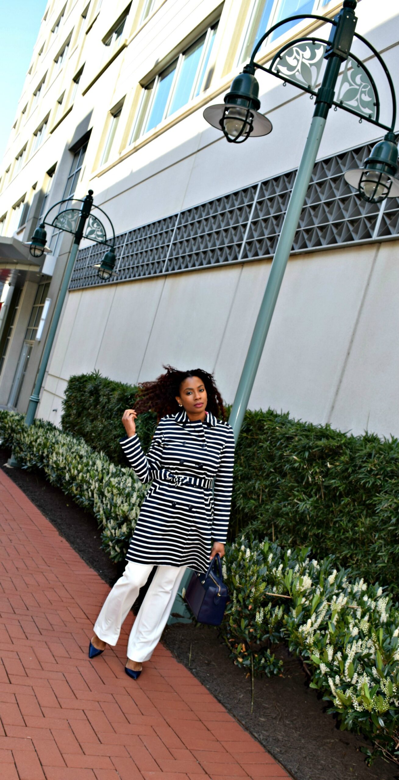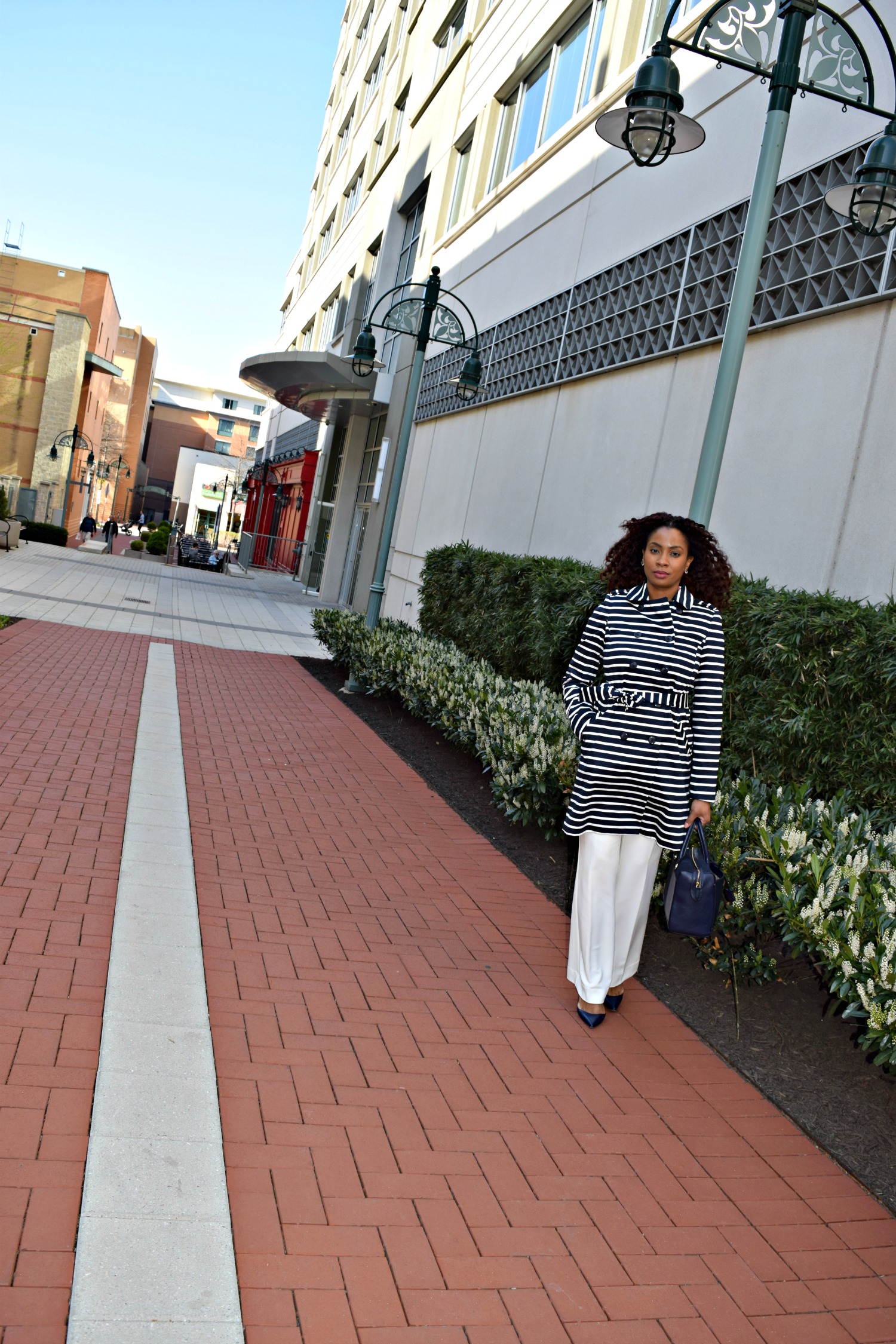 The good news is there are of course, fashion options for this. That’s the awesome thing about fashion, it’s functional for one, and stylish, for two. I like to keep the one and two together for an equation that equals Style Stamped. 🙂 I’m sure this is exactly what Thomas Burberry later discovered after crafting coats for officers in the trenches during the First World War. A coat that’s weatherproof, and fashionable! Burberry should know best (as his trench coats continue to cost upwards of $2,000 over 100 years later!). During the chillier days of this month I opted for a less costly trench coat (surprise surprise) from The Limited. I admit the weather did not prompt me to buy this coat but I did, in turn, wear it in the rain. Stripes and polka dots get me every time. #WinningInTheRain