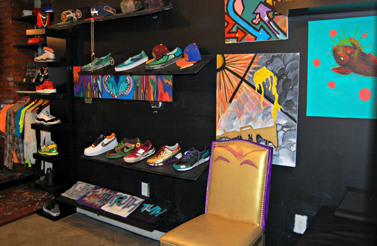 I was interested to know what was going on with the door, so I asked. Reme and Justin, the store owners, told me that on April 30th, the second day of the riots in Baltimore, the store was attacked not once, but twice that day. The boutique, known for it’s exclusive shoes and urban wear, has a great vibe with music playing and lots of customized items to view and purchase. Only days away from a celebratory one-year store opening anniversary, young teens of color striked this black owned business, causing physical damage to the window, door, and merchandise. Product was tossed around, shoes were stolen out of boxes prepared for shipment to customers, and the store was left in complete disarray. The result was thousands of dollars of loss to a store that had done so well in its first year, a loss was at the hand of the very people who would likely serve as target customers. Black customers turned vandals on a black owned business, as a result of a black man who was killed at the hand of white cops. I honestly have no words to insert here.