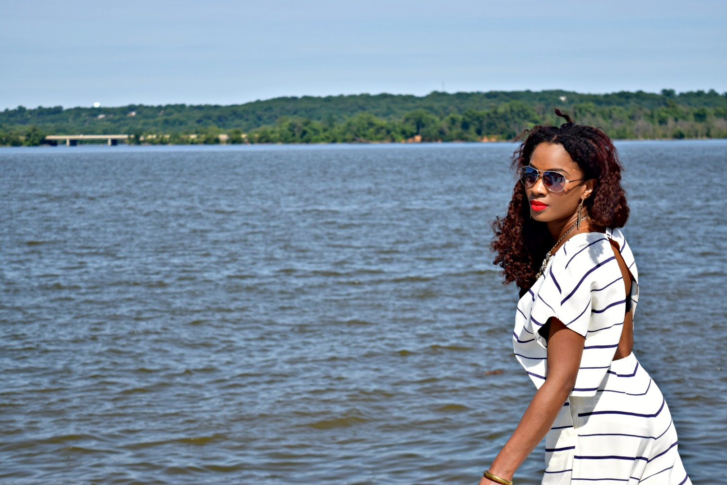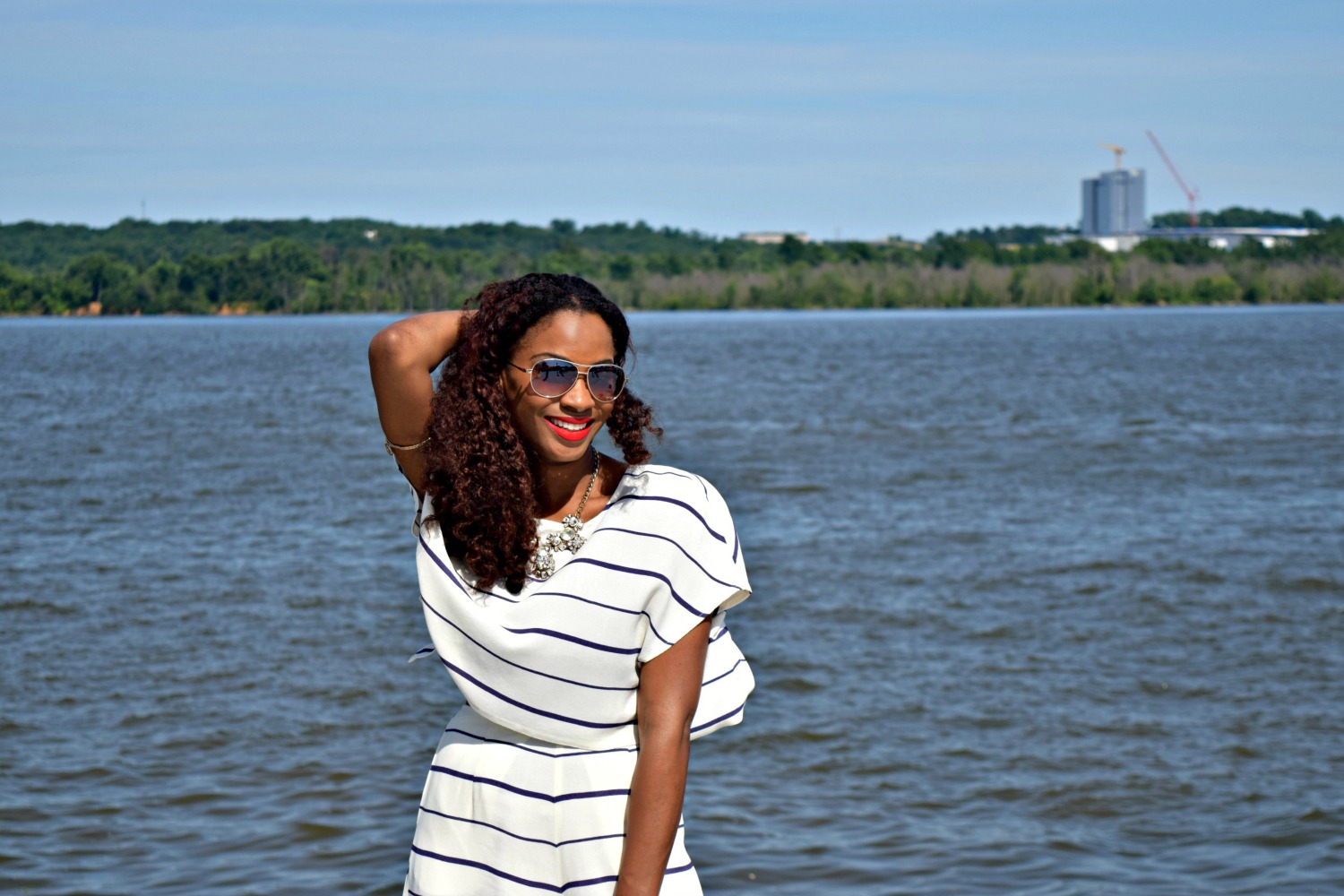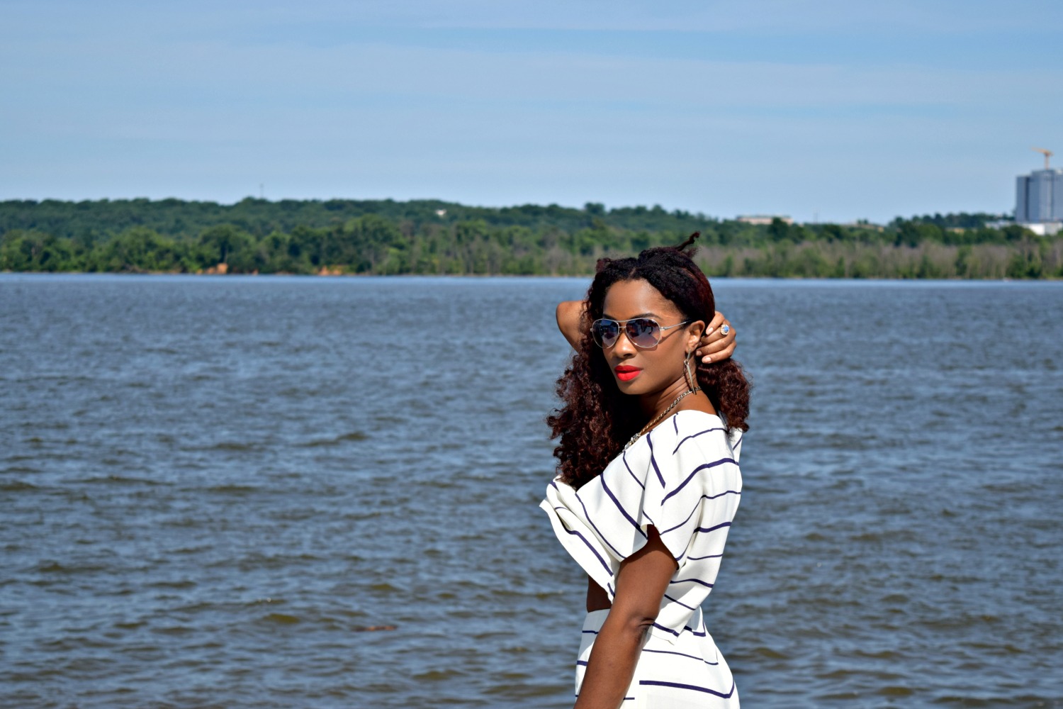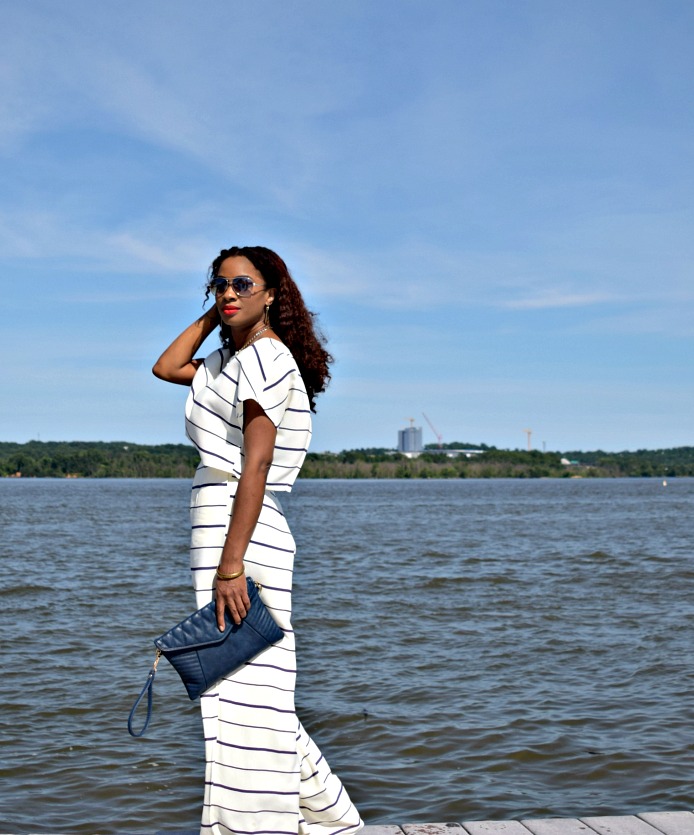 It’s that time of year again, my birthday! We are all blessed to see another year when we wake up on our born day, especially if we are healthy, happy, and still wrinkle free :). Since my birthday is so close to July 4th, I decided to wear something cute, classy, and cool that would work well for both “holidays” and I chose this white and blue striped set from the online boutique Tobi.