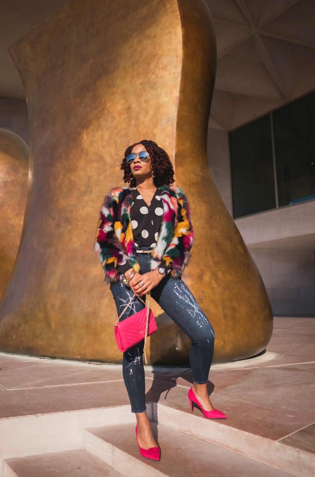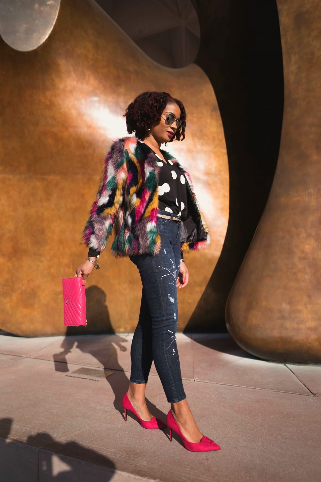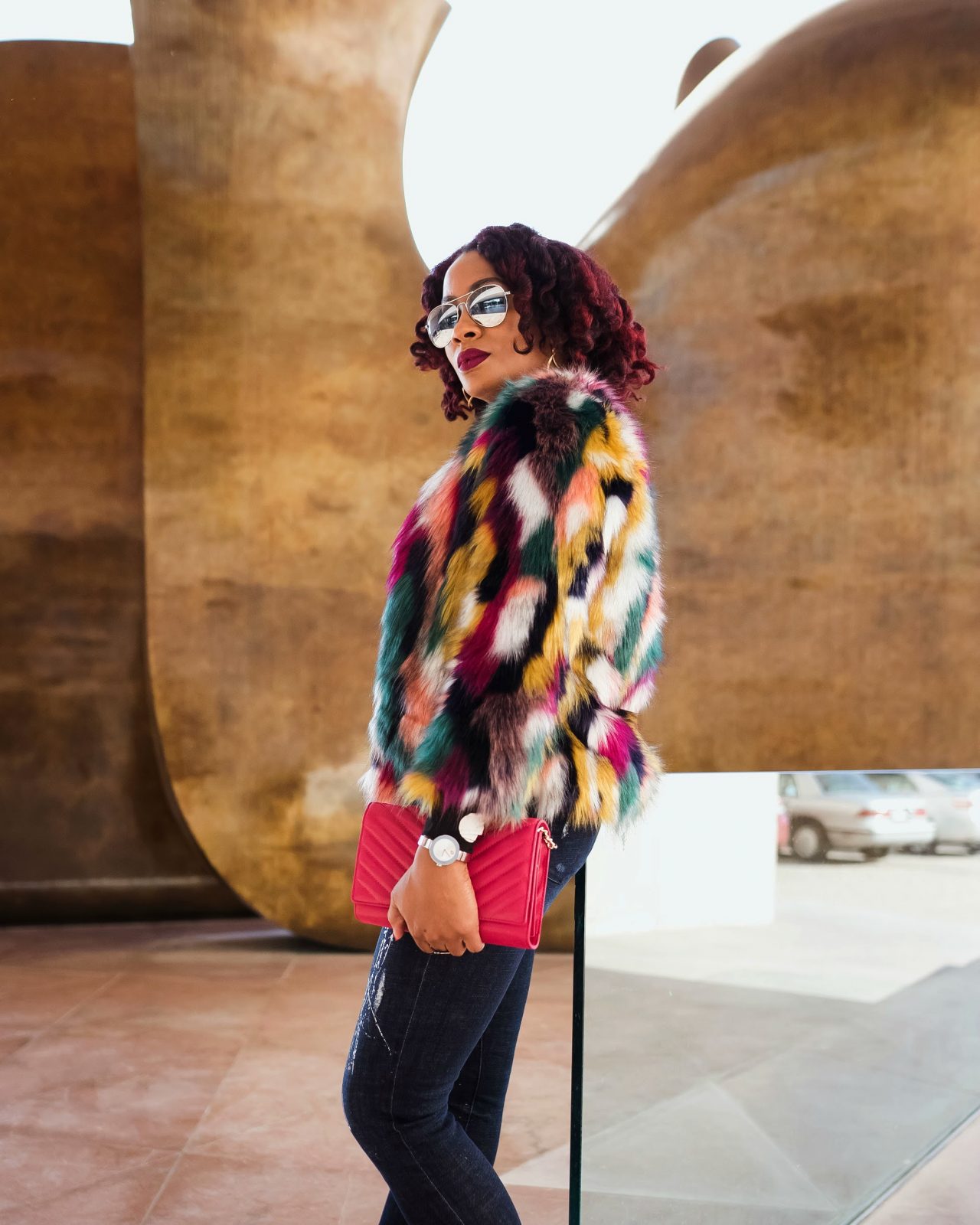 I’m one for stretching my style muscle but a coat with colorful fur is a piece that I wouldn’t pick up on my own. “It’s not my style” I’d say, or “it’s too trendy”. But when I was gifted this coat for Christmas by my cousin I figured, why not. It’s unlike anything in my closet and I’m always up for a style challenge. It also has the best colors that make it hard not to love!