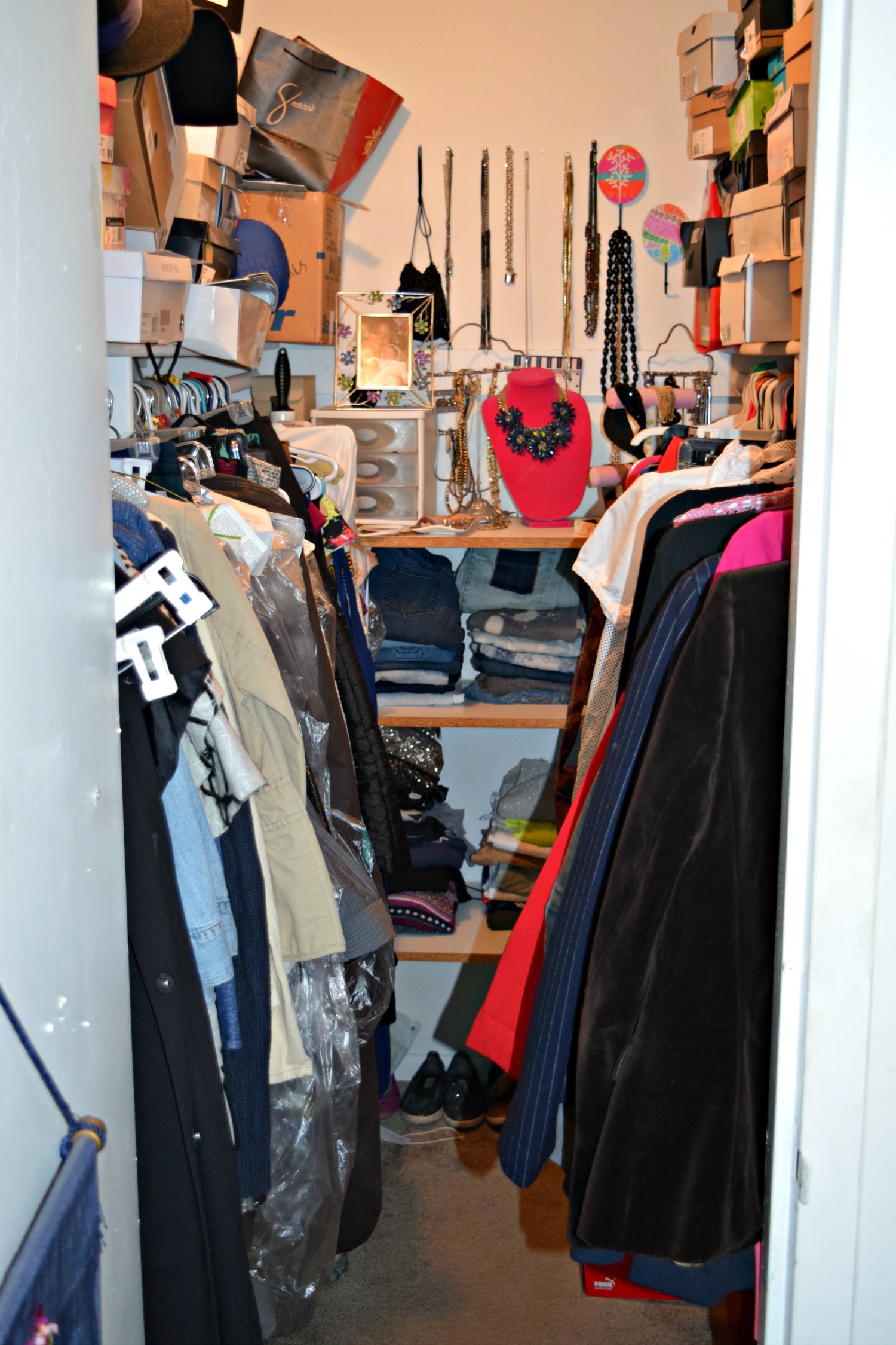 I understand this is the reason why I have a hard time moving my hangers over enough to see what’s actually hanging on them because they’re so closely packed next to all of the other hangers in the closet. But! I admit that I have a hard time letting go of some of my clothes because I love having a variety of articles to choose from, the same way that painters like to have a variety of colors to paint with. Now, I did get rid of a lot of things, which I donate to Goodwill more than once a year because the love does eventually fade. The point is, getting rid of a lot, or a little, is good for the closet, the house, and the soul. My mom says getting rid of old things allows more space for new good things. New things like clothes? Lol, I’m kidding. I also sell some of my clothes in my Poshmark closet. I think that my Style Stamped items should be allowed to find a good home and be worn by someone who will love them as much as I once did!