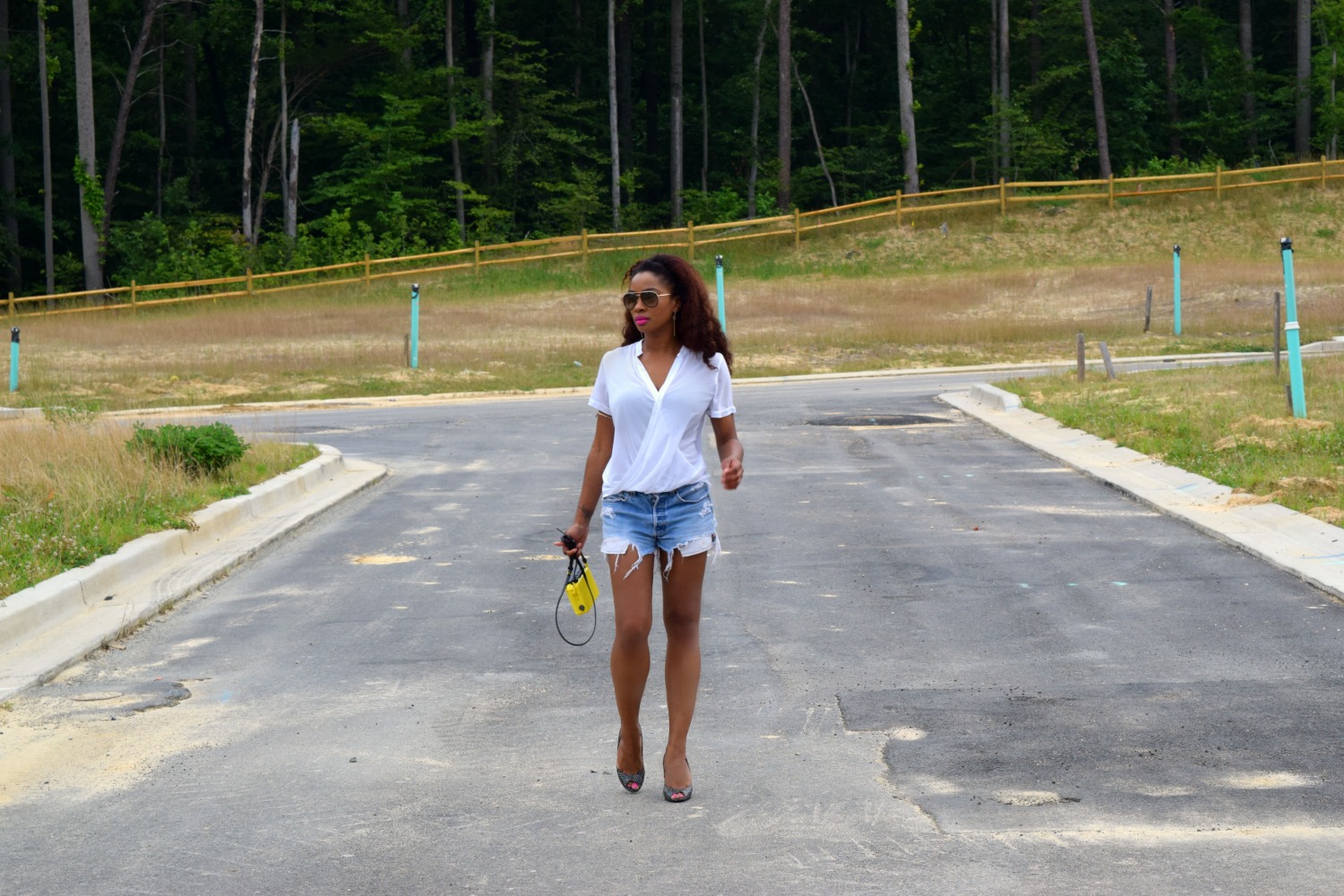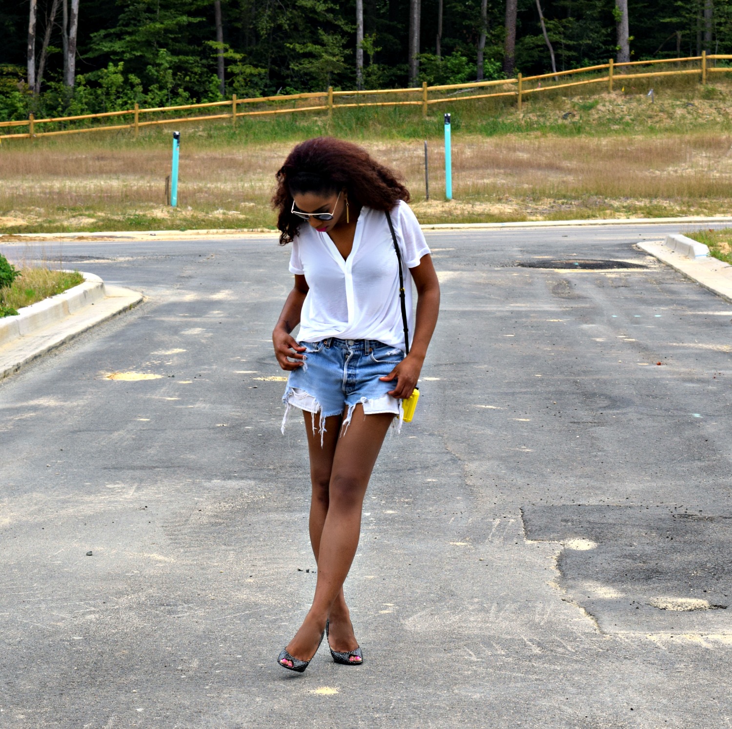 I don’t consider myself a minimalist at heart but it’s a style that I embrace while adding a little Style Stamped flair. What does that mean? I’ll wear a white wrap shirt maybe instead of a basic tee if I’m wearing denim, and maybe my shorts will be exaggeratedly distressed denim. With those Style Stamped details my shoes and accessories will be minimal, but if I have a cool bag I’ll throw that in. Here’s an example: