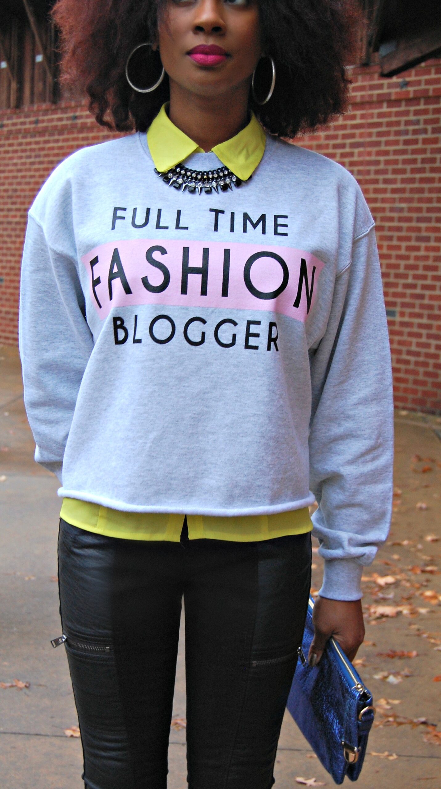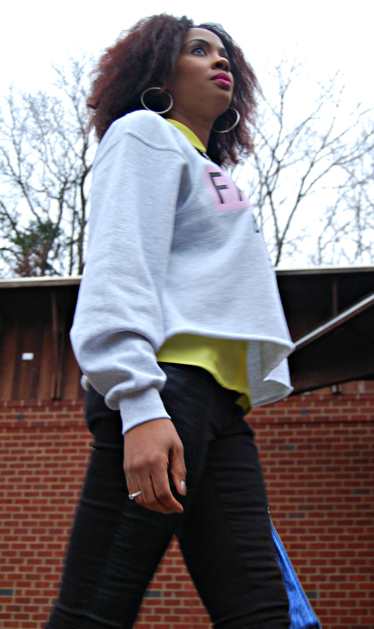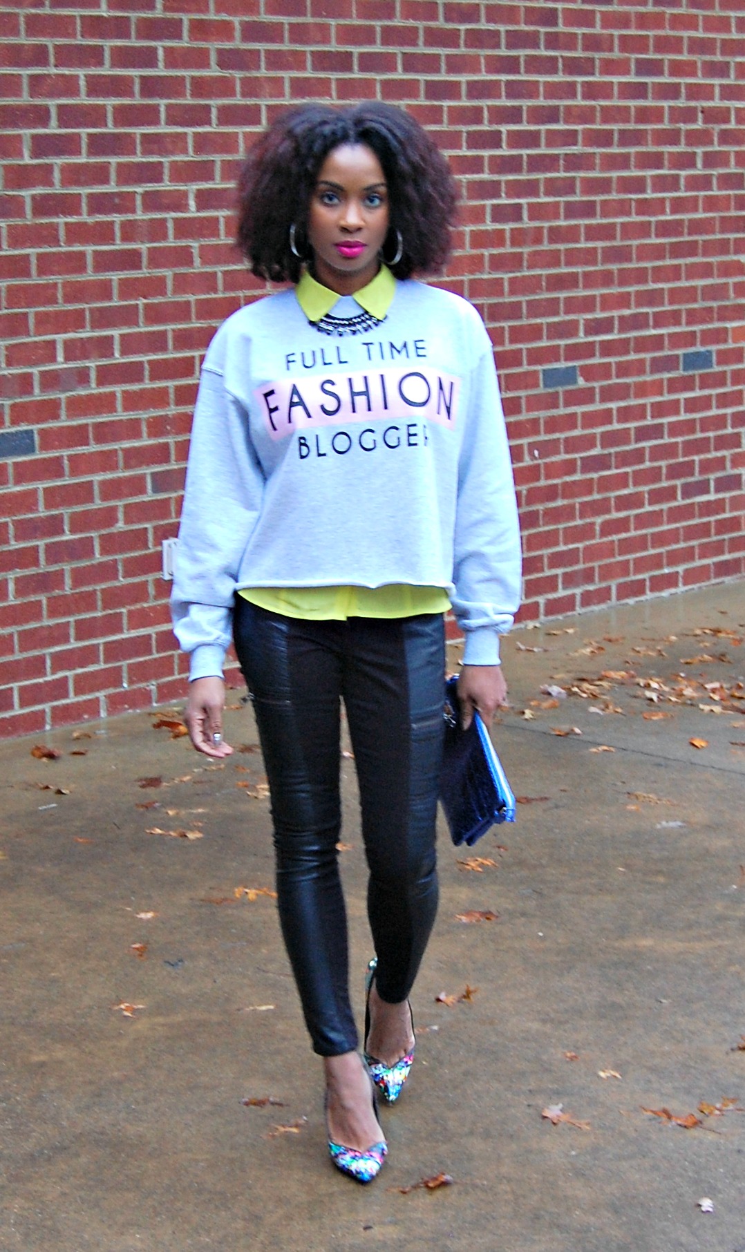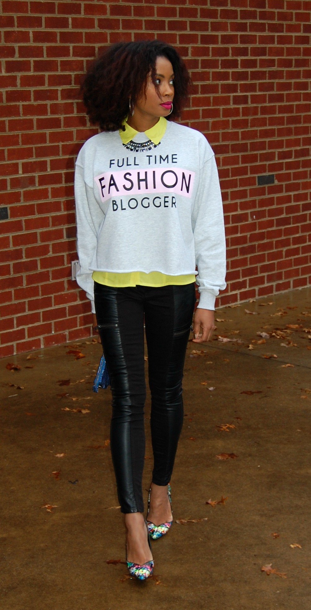 Wearing my favorite new sweatshirt from River Island, Jeans with faux leather and zippers (similar here), and my Keyshia Cole for Steve Madden graffiti pumps (similar here).